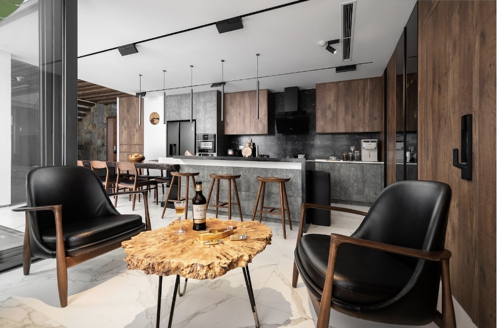 Sự giao thoa và hòa quyện giữa không gian bếp và phòng khách trong tổng thể không gian sống