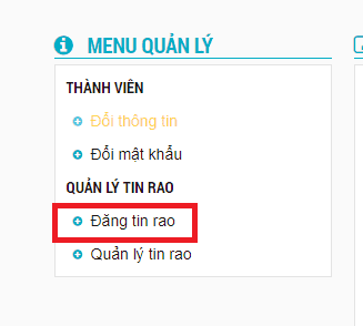 Bước 1: Chọn mục “Đăng tin” trên trang chủ hoặc “Đăng tin rao” ở phần quản trị tài khoản, bạn sẽ được chuyển đến màn hình đăng tin.