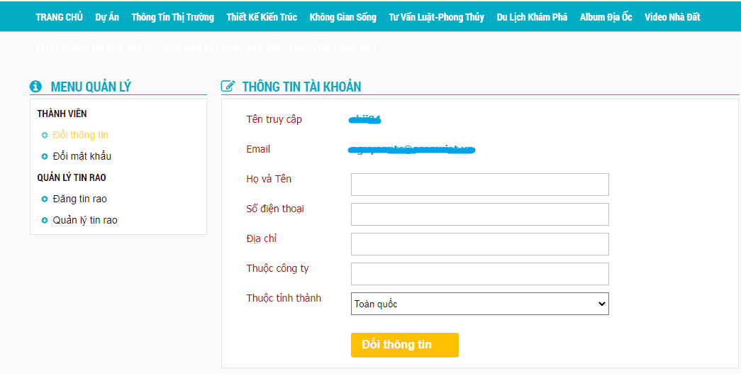 Bước 4: Cập nhật thông tin cá nhân trước khi đăng tin
