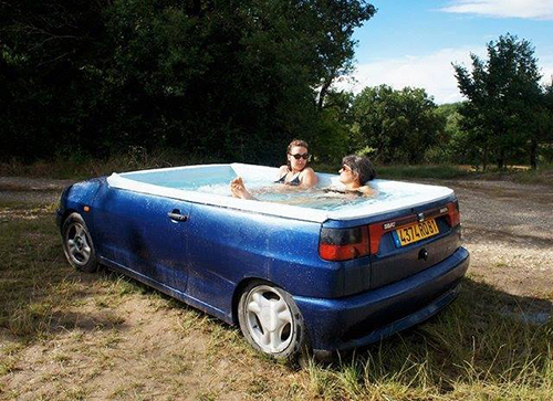 Không chỉ riêng xe tải mới có thể trở thành bể bơi ngoài trời, ngay cả chiếc xe hơi